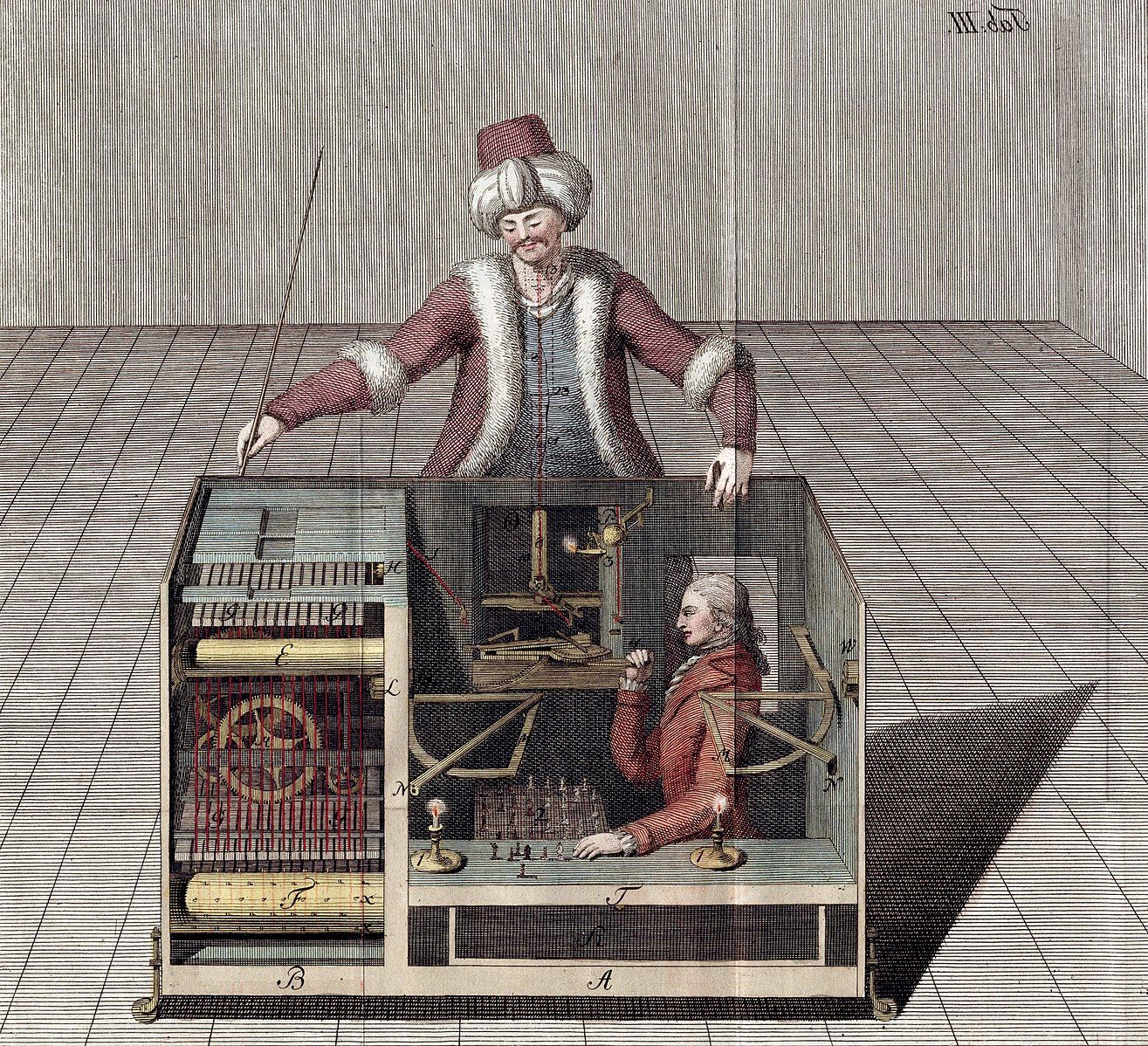 Probabilmente razzista.Il Turco (in tedesco: Schachtürke; in ungherese: A Török) era un automa che, teoricamente, avrebbe dovuto simulare un giocatore di scacchi, mentre si trattava in realtà di un imbroglio, essendo manovrato al suo interno da un giocatore umano.